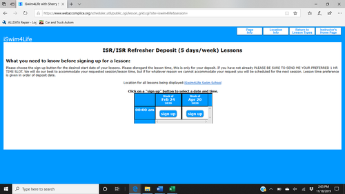Please follow the link below to sign up for an upcoming session. Lesson priority is given in order of deposit date. Deposit is equal to the first 2 weeks of lessons. We will do our best to schedule you in your chosen session & preferred time slot, however if we are unable to schedule you within an hour of your preferred time slot and/or in your chosen session your deposit can be refunded if you don't wish to participate in the following session. Please follow the step by step directions below for signing up, if you have questions please feel free to email any questions to s.spaar@infantswim.com.