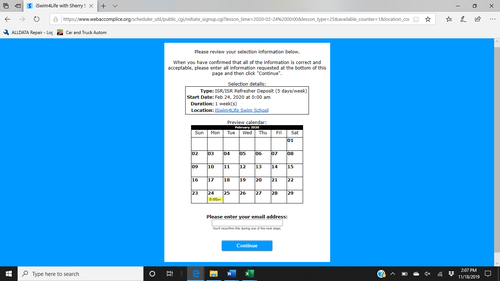 Step 3: Review the information and ensure you are signed up for the correct lesson type and start date (please disregard the duration of the lessons, all sessions are 6 weeks), enter your email at the bottom of the page