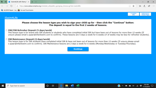 Step 1: Choose the lesson type that applies to your child, please email s.spaar@infantswim.com if you are unsure.