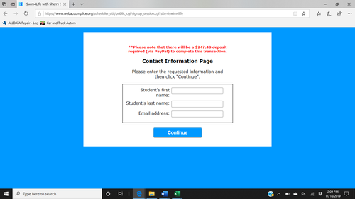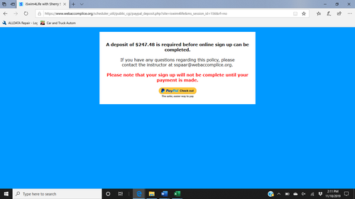 Step 5: Follow the link to pay your deposit by PayPal. The total is equal to 2 weeks of lessons and will be applied to your lesson balance. If you wish to pay by check you must drop it off by the pool during open hours. This must be done in order to complete registration for the session.